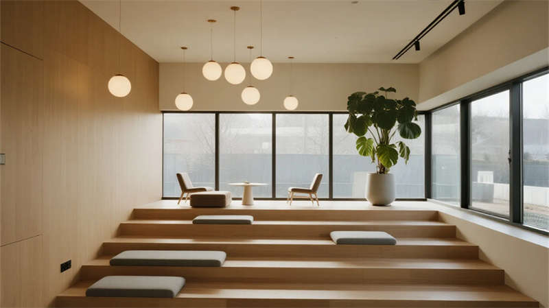 人性化細(xì)節(jié)貫穿始終——階梯休息區(qū)木色臺階軟化空間硬度,球形燈組如懸浮星辰;走廊通過精準(zhǔn)的光帶設(shè)計,將功能通道轉(zhuǎn)化為光影藝術(shù)長廊;會議室電子玻璃白板與磁吸燈光系統(tǒng),則體現(xiàn)智能與極簡的融合。項目扎根蕪湖工業(yè)土壤,以克制的設(shè)計語言實現(xiàn)工業(yè)建筑的功能升維,讓理性空間煥發(fā)靜謐詩意,成為現(xiàn)代制造美學(xué)的實體宣言。