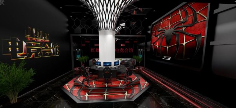俗話說,氣氛不能輸,一個(gè)氣場極強(qiáng)的電競會(huì)館絕對(duì)可以讓玩家、選手釋放個(gè)人最大戰(zhàn)斗力,分泌更多的腎上腺素進(jìn)入暴走狀態(tài)。本次案例整體設(shè)計(jì)上走的是現(xiàn)代前衛(wèi)風(fēng),以黑色為主色調(diào)猩紅色為輔,搭配空間感十足的燈光和炫酷的裝飾元素,緊緊扣合“紅蜘蛛”的品牌主題,同時(shí)非常凸顯時(shí)尚特色,符合消費(fèi)群體定位。