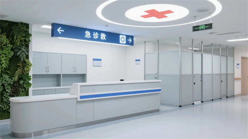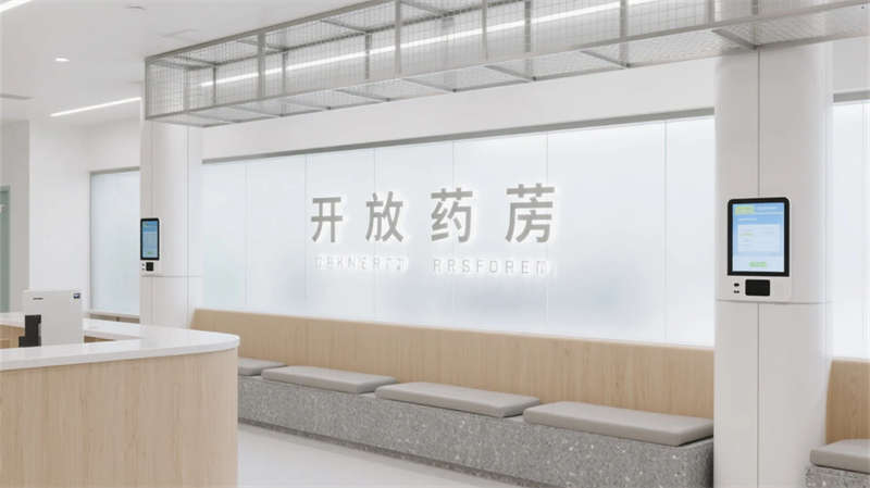 藥房區(qū)域的磨砂玻璃與金屬網(wǎng)隔斷,在通透與隱私間取得平衡;急診科模塊化設(shè)計(jì)確保高效響應(yīng),綠植墻緩解緊張情緒。全院統(tǒng)一運(yùn)用防菌地材、圓角處理及無障礙細(xì)節(jié),將安全關(guān)懷融入極簡美學(xué)。
