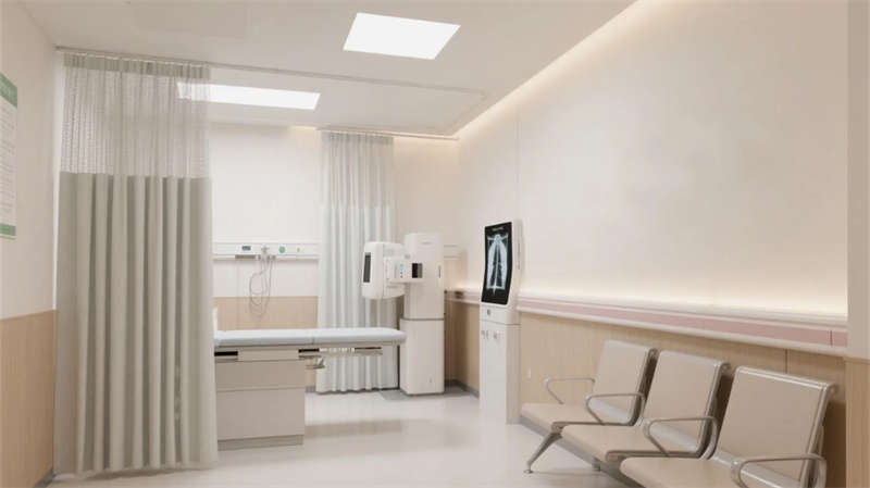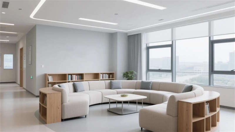 該社區(qū)醫(yī)院設(shè)計以現(xiàn)代簡約理念為核心,營造出溫馨而高效的醫(yī)療環(huán)境。整體空間強調(diào)人性化布局,接待大廳寬敞明亮,弧形接待臺與自然光結(jié)合,營造親切的第一印象。候診區(qū)舒適寧靜,沙發(fā)與書架的點綴減輕等待焦慮,診室則注重隱私與專業(yè)感,柔和色調(diào)提升患者信任。藥房設(shè)計簡潔清晰,便于快速取藥,急診室布局高效,確保緊急響應(yīng)流暢?;炇液陀跋窨仆怀龉δ苄?,無菌環(huán)境與設(shè)備集成保障精準診療,康復(fù)區(qū)開放通透,綠植與自然光促進身心恢復(fù)。所有區(qū)域統(tǒng)一運用中性色調(diào)、木質(zhì)元素和流線型家具,強化視覺連貫性,同時融入充足采光與綠意,打造舒緩氛圍。設(shè)計不僅提升醫(yī)療體驗,還呼應(yīng)了合肥的城市人文特色,為居民提供一處安心、便捷的健康港灣。