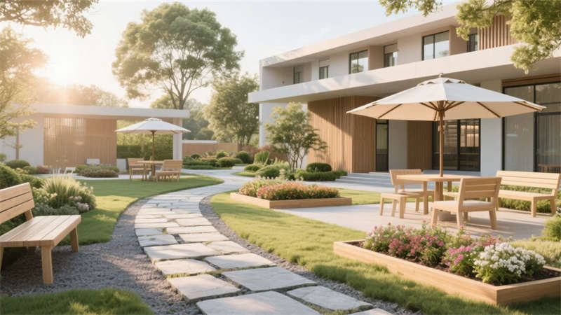 這套老年康養(yǎng)中心設(shè)計(jì)以現(xiàn)代簡(jiǎn)約風(fēng)格為核心,營造一個(gè)溫馨、安全且充滿活力的生活空間。設(shè)計(jì)強(qiáng)調(diào)自然光與柔和色彩的融合,入口大廳以開闊布局和藝術(shù)元素傳遞家的溫暖,休息區(qū)則通過舒適沙發(fā)和綠植打造社交港灣。餐廳和活動(dòng)室注重功能性,淺色調(diào)家具與靈活布局鼓勵(lì)日常互動(dòng),促進(jìn)社區(qū)歸屬感。居住單元采用圓角細(xì)節(jié)和私密氛圍,確保舒適休憩。康復(fù)訓(xùn)練區(qū)融入防滑設(shè)計(jì)和自然光,支持健康活動(dòng)。戶外庭院成為心靈綠洲,石板步道與花壇提供寧靜放松。多功能廳則適應(yīng)多樣需求,增強(qiáng)空間活力。整體設(shè)計(jì)以適老化理念貫穿,避免繁雜裝飾,突出簡(jiǎn)約美學(xué)與人性關(guān)懷,讓每位長(zhǎng)者感受到尊重與陪伴,在簡(jiǎn)約中體驗(yàn)生活的美好。