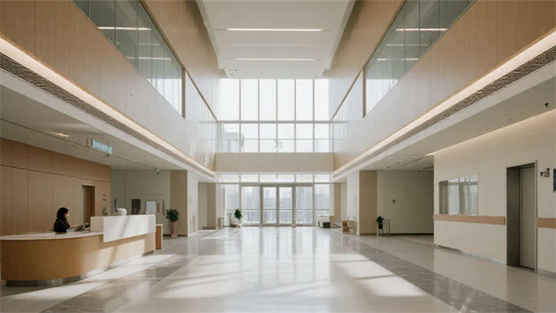 本設(shè)計將現(xiàn)代簡約美學(xué)注入醫(yī)療空間,打造兼具人文關(guān)懷與高效功能的療愈環(huán)境。通透的玻璃幕墻引入充沛自然光線,淺木紋與灰白色基調(diào)營造寧靜氛圍,綠植元素的有機融入模糊了建筑與自然的邊界。