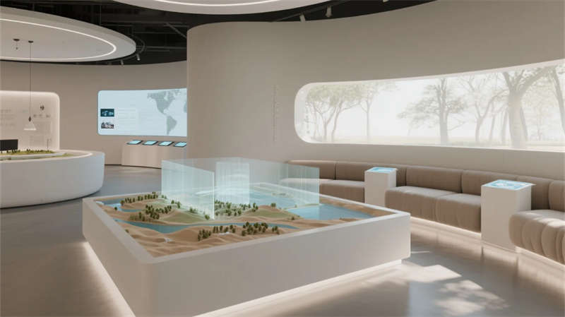 這座展廳以現(xiàn)代簡約風(fēng)格為核心,打造流暢而富有張力的空間體驗(yàn)。入口區(qū)以開放姿態(tài)迎接參觀者,核心展示區(qū)陳列創(chuàng)新展品,互動(dòng)區(qū)通過科技裝置激發(fā)探索樂趣。多媒體區(qū)以視聽盛宴強(qiáng)化敘事,休息區(qū)則提供舒適角落促進(jìn)交流,會議區(qū)靈活多變適應(yīng)多樣需求。主題區(qū)巧妙融入本土特色,未來區(qū)以先鋒設(shè)計(jì)點(diǎn)燃靈感火花。整體設(shè)計(jì)中,簡潔線條與中性色調(diào)營造寧靜基調(diào),高科技元素如數(shù)字屏和智能照明無縫融入,增強(qiáng)功能性與藝術(shù)感??臻g動(dòng)線自然引導(dǎo),從喧囂到沉思,材質(zhì)選用環(huán)保而溫暖,綠植點(diǎn)綴平衡科技冷峻。展廳不僅服務(wù)于展示,更成為啟發(fā)對話與思考的場所,每一功能區(qū)銜接緊密,共同編織一場關(guān)于未來的故事。在合肥這座活力之城,設(shè)計(jì)以包容姿態(tài)回應(yīng)城市脈動(dòng),為公眾帶來沉浸式文化之旅。