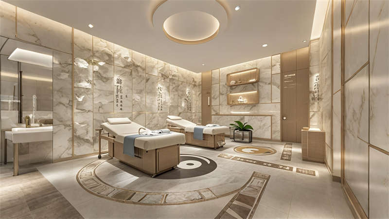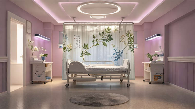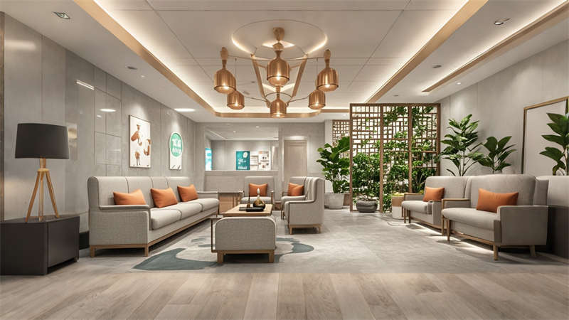 本2000平中醫(yī)院設(shè)計融合傳統(tǒng)中醫(yī)文化與現(xiàn)代醫(yī)療功能,采用 ' 療愈之境 ' 核心理念??臻g規(guī)劃采用 ' 回' 字形動線,門診、診療、康復(fù)三大功能模塊環(huán)繞中央庭院布局。色彩體系以米白、淺灰為基底,點(diǎn)綴赭石、黛青等傳統(tǒng)中藥色彩,墻面肌理漆模擬紙張質(zhì)感呼應(yīng)古籍文獻(xiàn)。診療區(qū)域采用模塊化隔斷系統(tǒng),兼顧隱私與通風(fēng)需求。智能照明系統(tǒng)可模擬晝夜節(jié)律變化,候診區(qū)座椅集成無線充電功能。重點(diǎn)區(qū)域設(shè)置 AR 中醫(yī)文化互動裝置,住院部走廊每 10 米設(shè)置中藥香薰擴(kuò)散點(diǎn)。材料選擇注重環(huán)保性與耐久性,地面采用防菌 PVC 卷材,墻面使用易清潔的納米涂層。整體設(shè)計通過現(xiàn)代設(shè)計語言詮釋中醫(yī) ' 天人合一 ' 理念,打造兼具專業(yè)醫(yī)療功能與人文關(guān)懷的現(xiàn)代化中醫(yī)院空間。