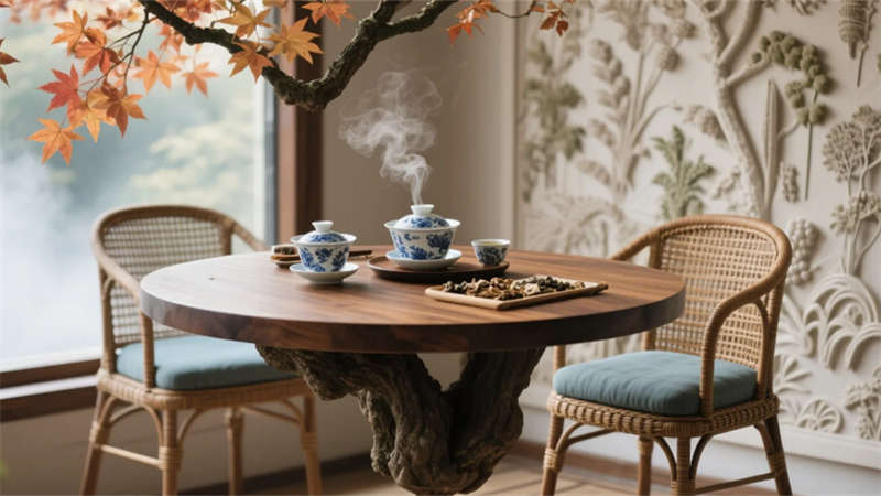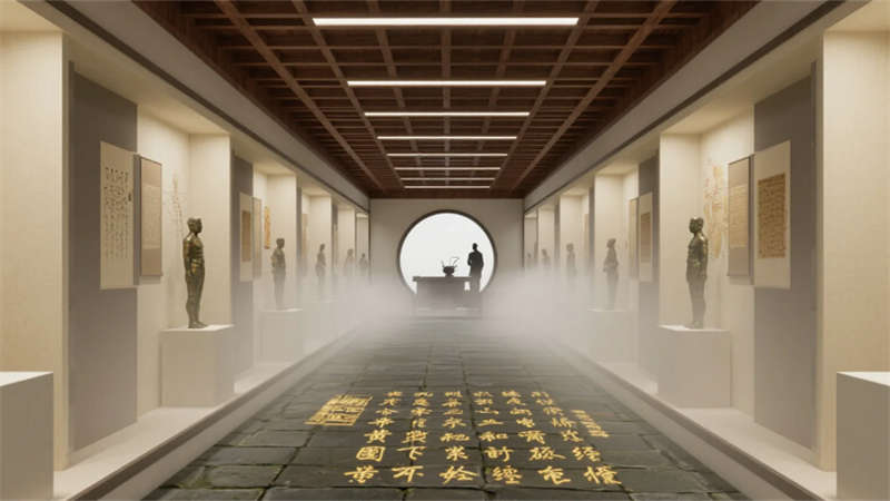 針灸室格柵隔斷透出晨光竹影,經(jīng)絡(luò)圖前銀針泛著柔光;文化長廊地面流動篆書金句,引領(lǐng)視線穿透月洞門望向煎藥銅鍋升騰的薄霧。茶療區(qū)古茶樹畔,藥汽氤氳于青花茶盞,百草浮雕墻下藤椅邀人小憩。