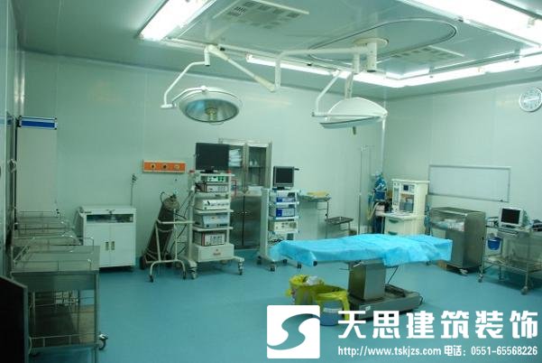 地面。應(yīng)平整,采用耐磨、防滑、耐腐蝕、易清洗、易起塵及不開裂裝飾材料,百級(jí)手術(shù)室可選用防靜電、抗菌、防火、耐磨的橡膠地板、淡黃色PVC地板;千級(jí)、萬(wàn)級(jí)手術(shù)室可選用米黃色水磨石板或人造石地板。注意橡膠地板或人造石地板,連同地面聯(lián)成一體的陰角處理。墻面——成型鋁板或塑鋁板墻裙、防水磯理紋乳膠漆,做好接縫。水磨石宜用425號(hào)或以上水泥,石子粒徑5~15mm,以防止開裂、掉石子、起砂。地面不宜設(shè)地漏,否則應(yīng)有防室內(nèi)空氣污染措施——如設(shè)置高水封地漏。